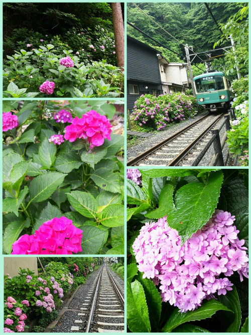 江の電と紫陽花のコラボも素敵です。