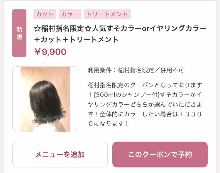イヤリングカラーorすそカラー+カット+トリートメント