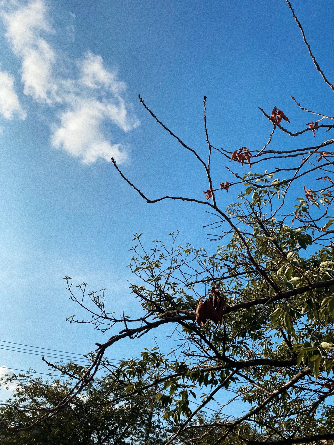 その枝先に枯れ葉がくっついていました。