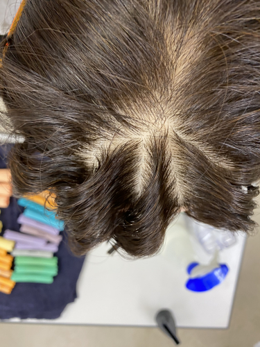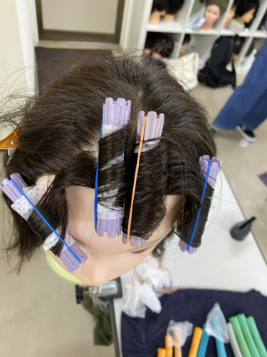今私たち1年生から3年目の先輩方までが月に1回パーマの勉強会をさせて頂いていて、そこで今1年生は前髪パーマの勉強をさせて頂いていています!