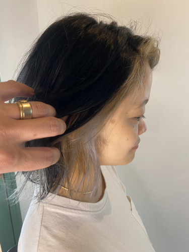 前回は、フェイスフレーミングを入れていたので、耳上のラインまでブリーチしてから、少し色をいれました!